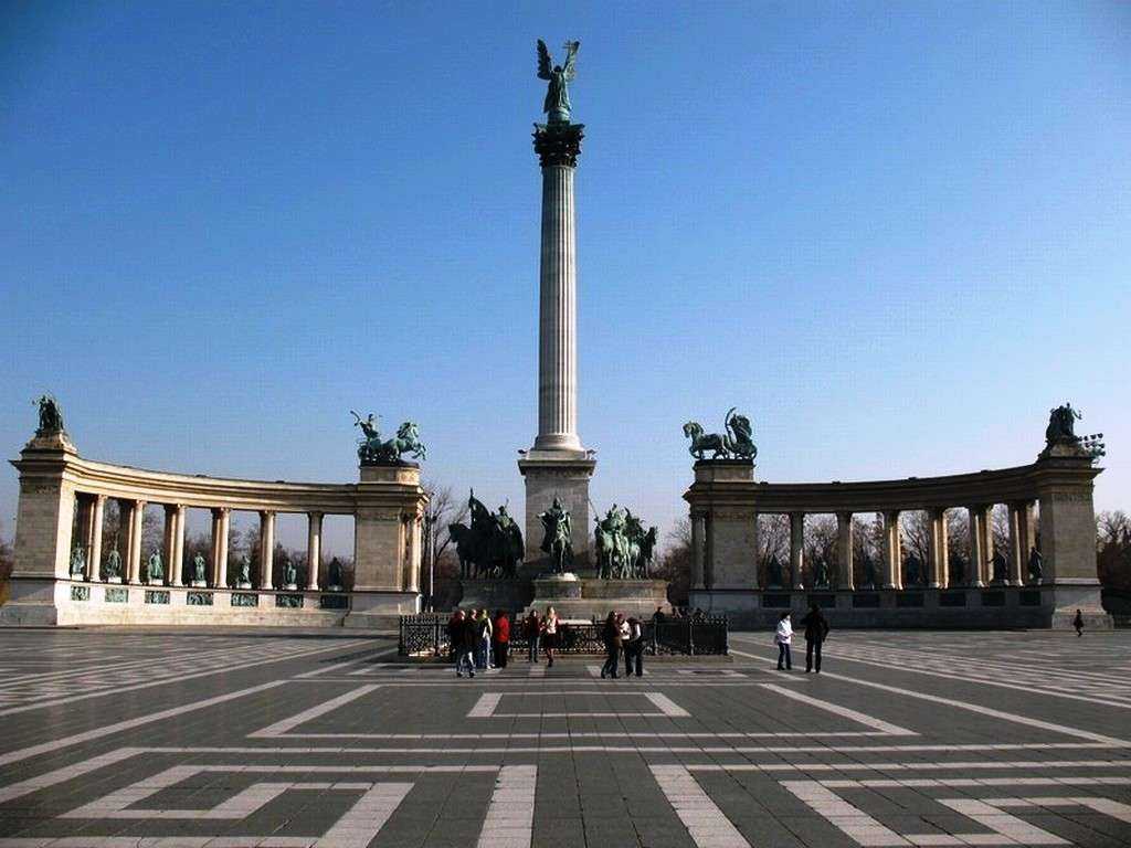 Туристов первым делом привозят посмотреть на одну из главных достопримечательностей Пешта — Площадь Героев. Там находится скульптурная композиция, созданная к юбилею 1896 г., и представляющая собой полукругом расположенные статуи выдающихся государственных деятелей Венгрии.