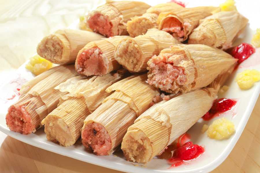 - Блюдо, которое можно попробовать везде — тамаль. Это обжаренное кусочками мясо или курица с томатом в кукурузной каше. Оборачиваются тамали кукурузными или банановыми листьями.