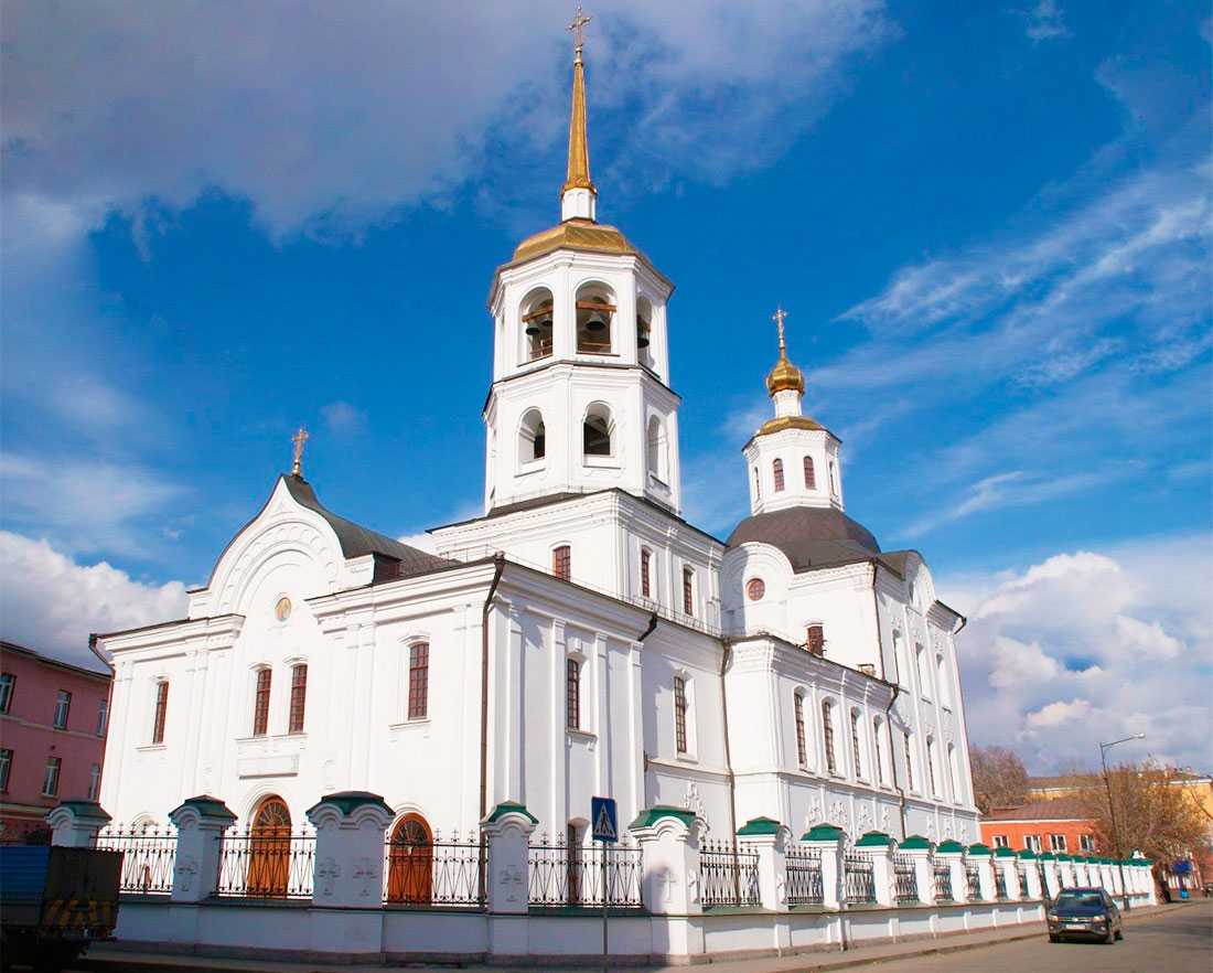 Самый крупный и яркий храм Иркутска, чем-то напоминающий питерский Спас на Крови. Он интересен в первую очередь с точки зрения архитектуры – это греко-византийский стиль с использованием элементов эклектики. Впечатление производит идеальная симметрия сооружения, изящные высокие главки, арочные ворота главного входа, интересная отделка фасада и, конечно, роскошное внутреннее убранство. Восхищает грандиозный 12-метровый иконостас, сделанный из индийского гранита шоколадного оттенка, украшенный изысканной резьбой и позолотой!