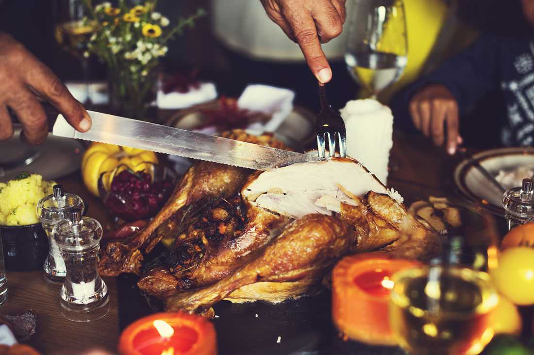 Традиционная праздничная еда для канадцев европейского происхождения — жареная индейка и блюда из сезонных продуктов.