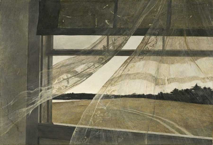 На первый взгляд Уайет писал самое обыденное. Вот старое окно старого дома. Ветхая занавеска, которая уже начала превращаться в клочья. За окном темнеет лес.