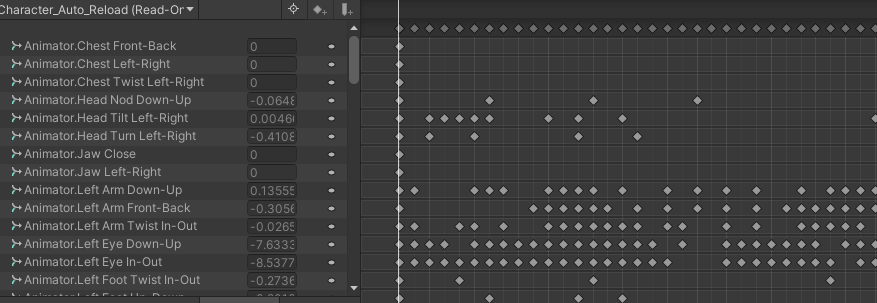 Мы уже говорили про Rig. Так вот, на каждую часть тела назначены свои ключи анимации. Если вы попробуете открыть анимацию персонажа двойным кликом, то увидите примерно такую картину: