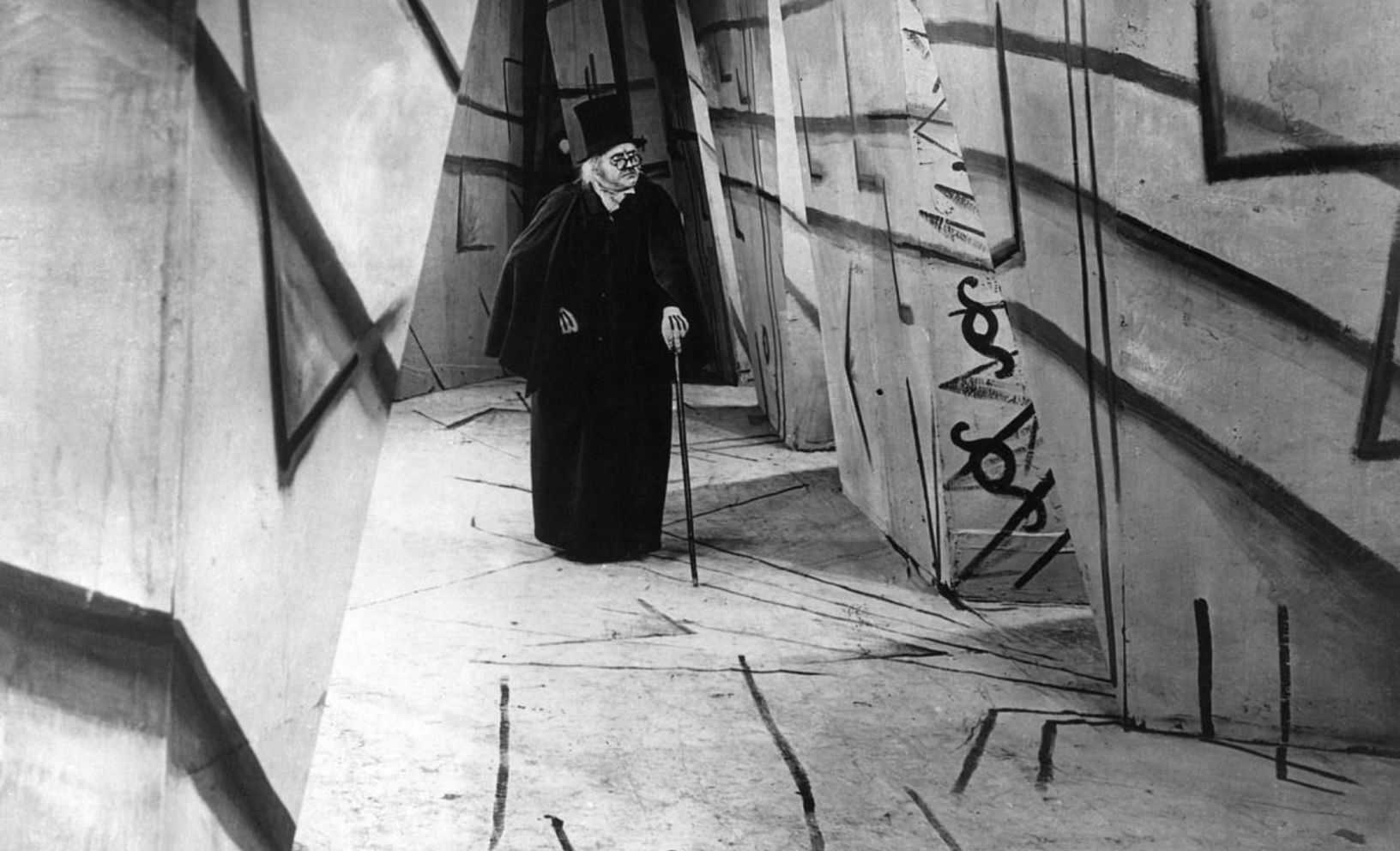 Этот мистический триллер считается первым фильмом в жанре киноэкспрессионизма. Геометризованные декорации «Кабинета доктора Калигари» предельно далеки от реализма. Изображения фонарей, теней и предметов нанесены прямо на стены помещения. Расстройство психики главного героя, его нестабильная внутренняя реальность передаётся при помощи съёмки с острого угла и т. н. «субъективной» (шатающейся, подвижной) камеры. Игра актёров экзальтирована, их мимика и жестикуляция утрированы, изобилуют крупные планы. Широко используются цветные светофильтры.