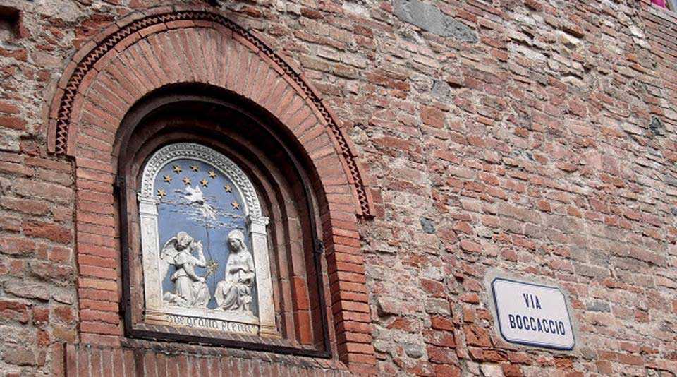 Главная улица – виа Боккаччо – протянулась от ворот Альберти, где стоит палаццо Ридольфи, прежде принадлежавший семейству, чьим именем названы ворота, до Палаццо Преторио, в котором со времен оных помещалась все городское управление и администрация, включая суд и тюрьму. На виа Боккаччо народа почти не было, но лавочки и магазинчики открылись. Музей в «Каза Боккаччо» был закрыт, к великому нашему огорчению, хотя, как сказал нам один местный житель, «ничего особенно древнего там нет – одни таблички да несколько пар старинной обуви».