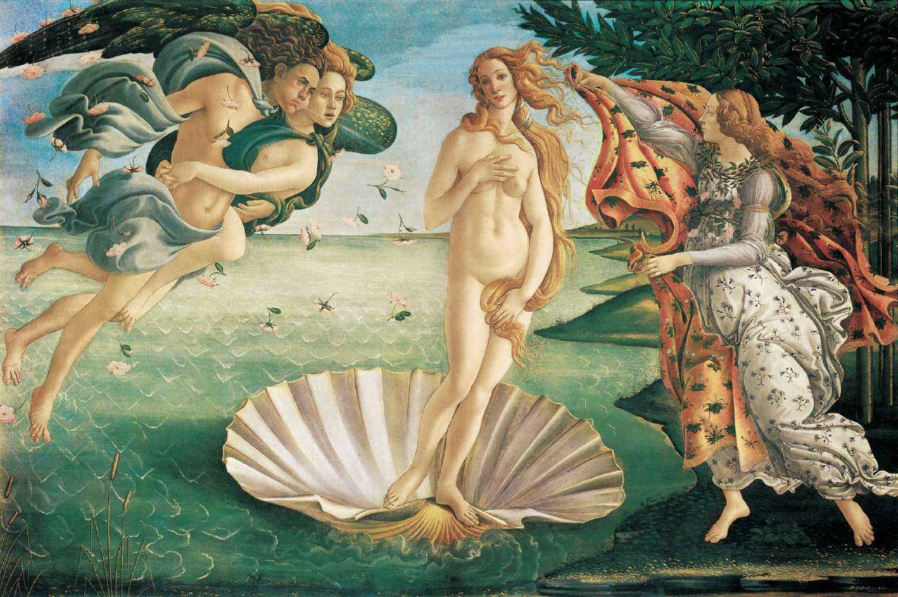 Эта картина у многих является одной из самых любимых в творчестве Сандро Боттичелли. К концу жизни художник потерял былую популярность, а его репутация возродилась только в конце 19 века, с тех пор картина «Рождение Венеры» приобрела невероятную известность. На картине изображена богиня любви Венера, плывущая к берегу из моря на огромной раковине. Бог ветра Зефир, уносит её на сушу, в то время как нимфа уже ждёт её с накидкой, чтобы скрыть наготу и обогреть.