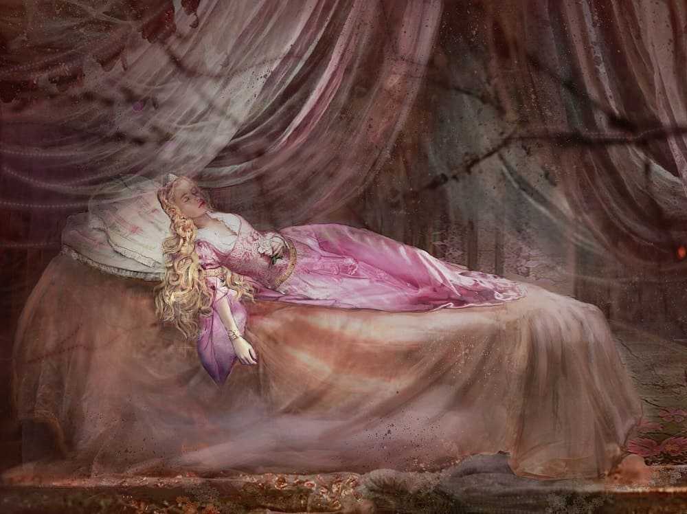 Едва острый шип коснулся руки Брюнхильды, она тут же уснула крепким сном / Olena Vecchi Pittura / artstation.com