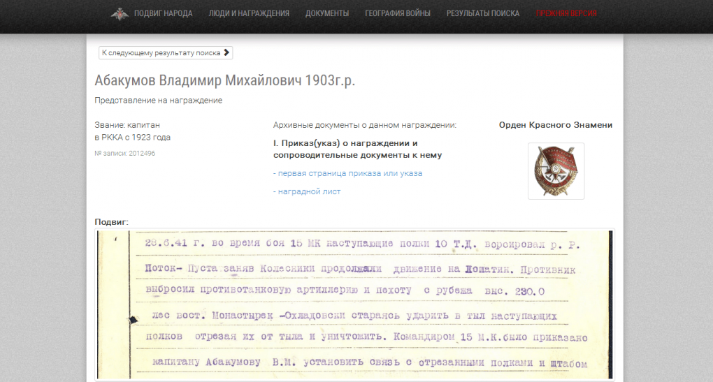 Для поиска указов и данных по месту проведения военных действий, советуем использовать другой сайт — «Память народа» о котором будет рассказано ниже. Если вы хотите произвести поиск по номеру награды, то этого не получится сделать, т.к. в документах по награждению номера наград не указаны.