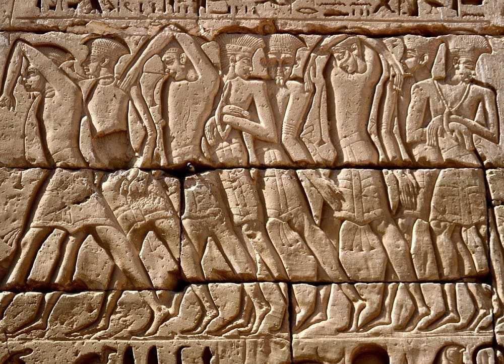 Пленные воины-филистимлянеРельеф из храма Рамзеса III, XII в. до н.э.Местонахождение: Мединет Абу, Египет
