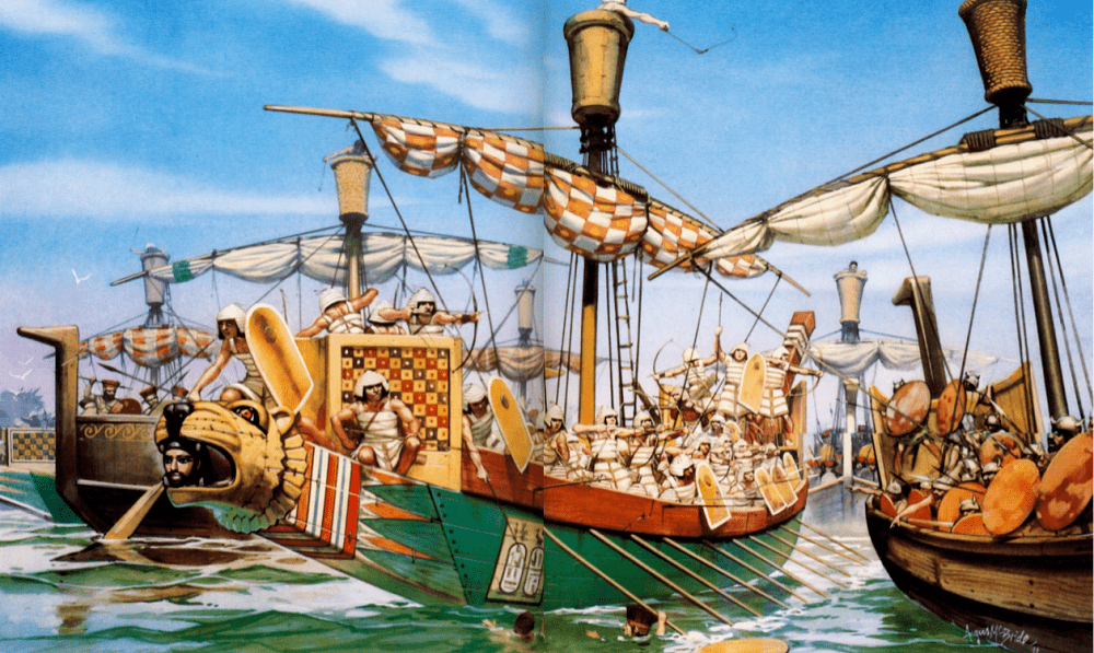 Рамзесу III с трудом удалось разбить натиск «Народов моря» в двух сражениях.