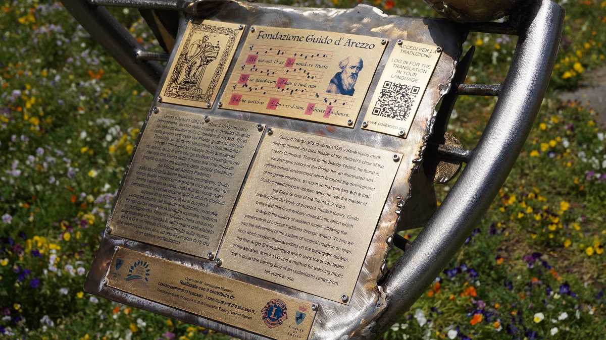 Информационная табличка у статуи Гвидо в Ареццо. (Wikimedia Commons)