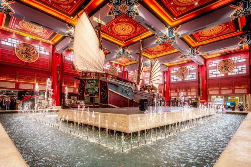 В центре дворика находится гигантский корабль, посвященный великому исследователю, а внутренние помещения двора украшены гигантскими медальонами дракона и китайскими символами.