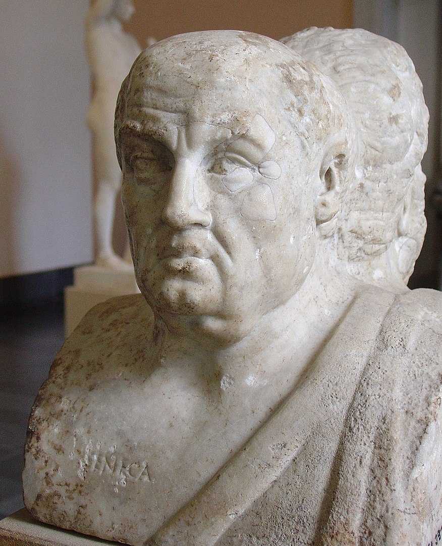 Выдающийся древнеримский философ десятки лет провёл рядом с Нероном. Он был наставником будущего императора, а позднее его ближайшим советником. В первые годы правления Нерона именно Сенека занимался всеми гражданскими делами империи. В зрелом возрасте философ стал одним из богатейших людей Рима. Одновременно от его решений зависела судьба миллионов жителей государства. Но Сенека оставался совершенно равнодушен к роскоши и не проявлял никаких признаков властолюбия. Зато всё свободное время он посвящал писательской деятельности. Он оставил десятки философских и художественных трудов.