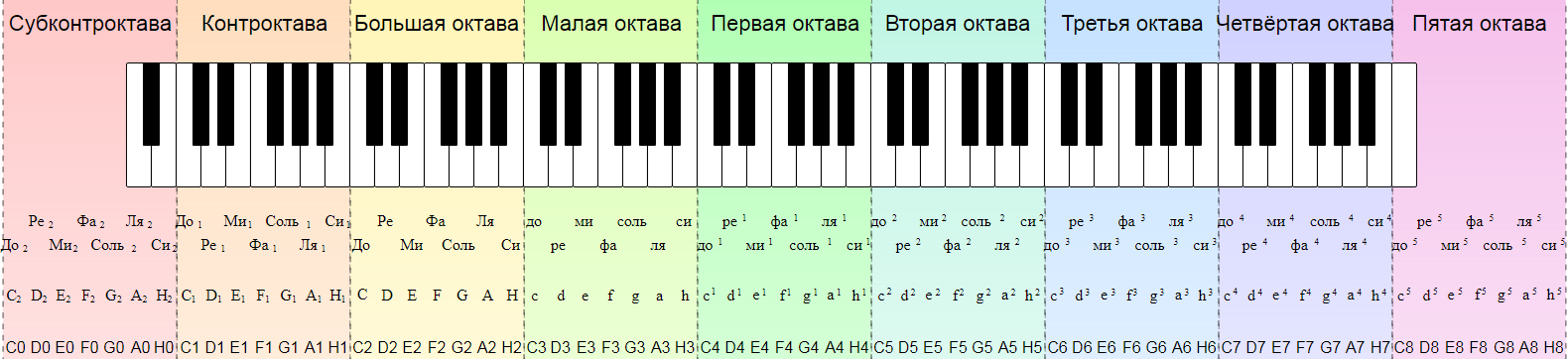 Ввиду того, что сегодня в моде электронная музыка, а поп- и рок-группы в качестве инструментальной поддержки часто используют синтезатор, предлагаем познакомиться с ним поближе. В отличие от обычного фортепиано, клавиатура стандартного синтезатора охватывает 5 октав, а не 7. Другими словами, если диапазон фортепиано от контроктавы до четвертой октавы, диапазон синтезатора – от большой до третьей октавы.