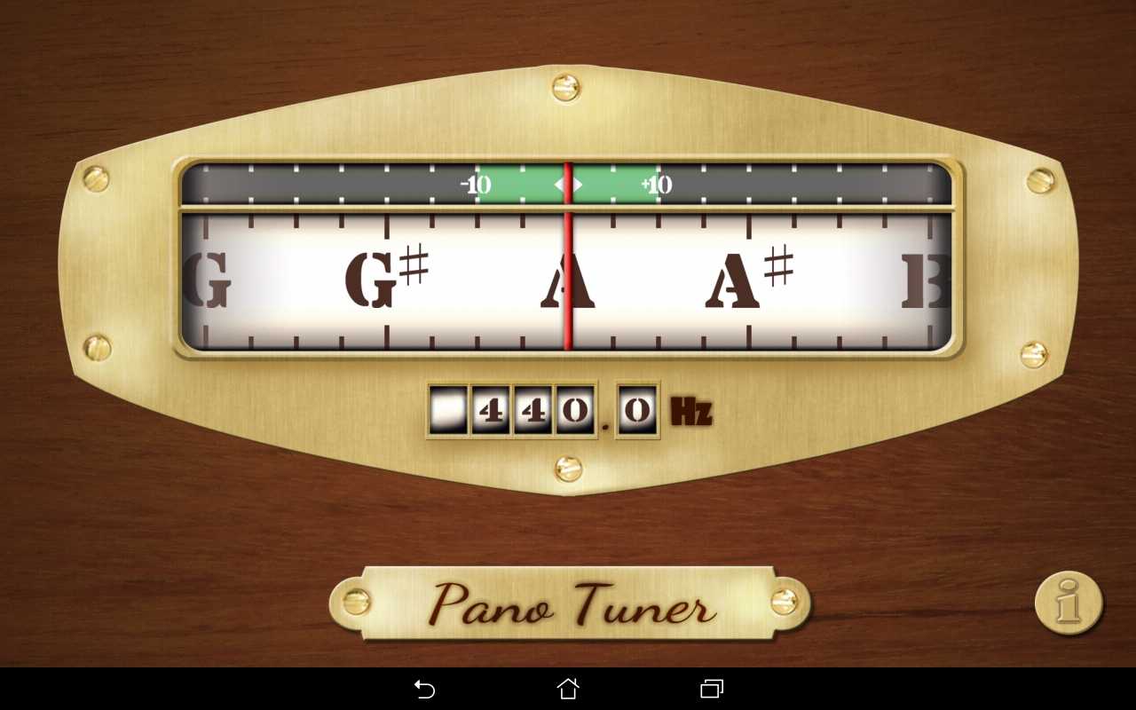 Очень желательно первые шаги на музыкальном поприще делать под руководством преподавателя. Во-первых, вам могут понадобиться советы или услуги профессионала по настройке музыкального инструмента. Проверить, насколько точно настроен инструмент, можно с помощью приложения Pano Tuner, разрешив приложению доступ к микрофону. Так выглядит интерфейс приложения: