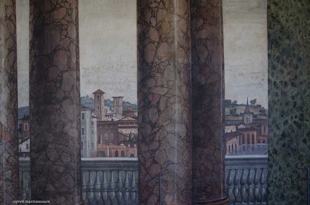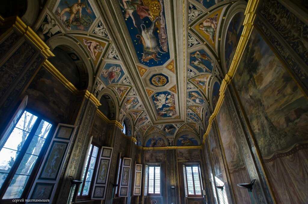 Рафаэль, уже в ту пору популярный художник, приглашенный работать в Ватикан, был привлечен для работы над росписями.Фотографировать в интерьере виллы разрешено и там мало туристов, поэтому рассматривать удобно. Небольшая и уютная вилла расписана столь обильно, что можно разглядывать долго, разбираясь в мифологических сюжетах росписи.