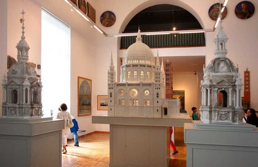 На втором этаже можно зайти в музей Кафедрального Собора, описывающего его историю еще с первой версии здания. Впечатляют искусно сделанные макеты зданий, демонстрирующие не только их внешний вид, но и внутреннюю отделку. Кое-где, чтобы обеспечить возможность просмотра внутри макета, сделали специальные зеркала.