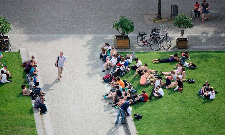 В тёплый солнечный день приятно поваляться на травке в парке Люстгартен перед собором: