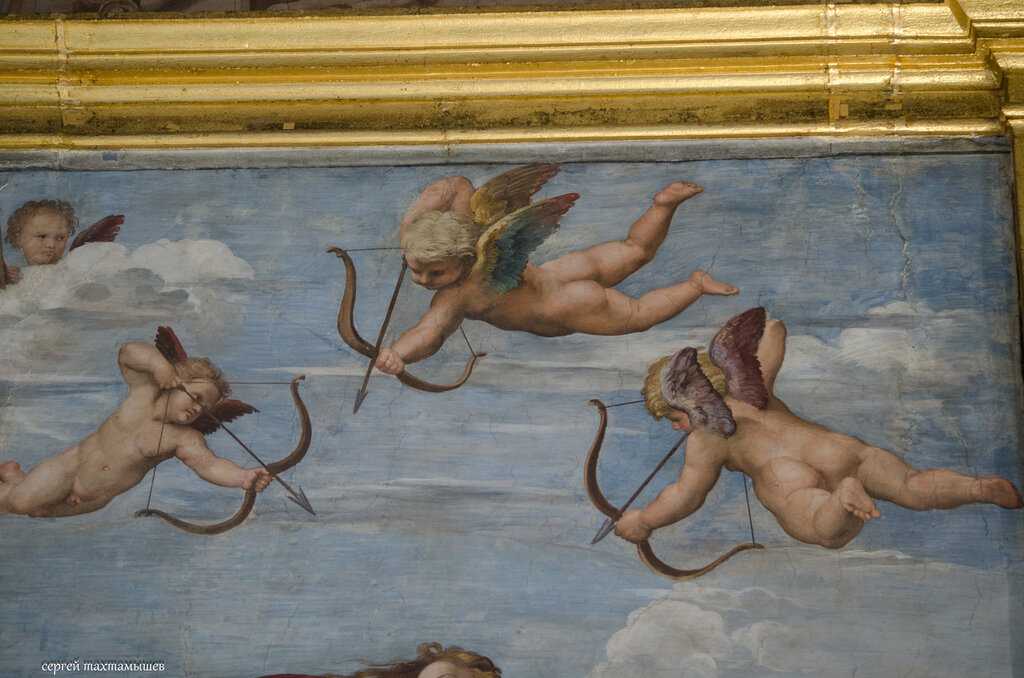 Сегодняшней известности вилла Фарнезина немало обязана тому факту, что Агостино Киджи был большим ценителем искусства и покровительствовал знаменитому художнику эпохи Возрождения Рафаэлю. И не только покровительствовал, но и являлся его основным заказчиком. В связи с чем именно кисти этого гениального художника принадлежит большая часть росписей на вилле Фарнезина. Самая знаменитая из них – «Триумф Галатеи», написанная на один из сюжетов «Метаморфоз» Овидия в одноименном зале виллы (Зале Галатеи), расположенном на ее первом этаже с правой стороны от входа. Это одна из тех редких фресок, на которых нимфа изображена на колеснице в форме раковины. Рафаэлем выполнены и совершенно восхитительные росписи на тему истории Амура и Психеи, которые можно увидеть на лоджии галереи, выходящей в сад.