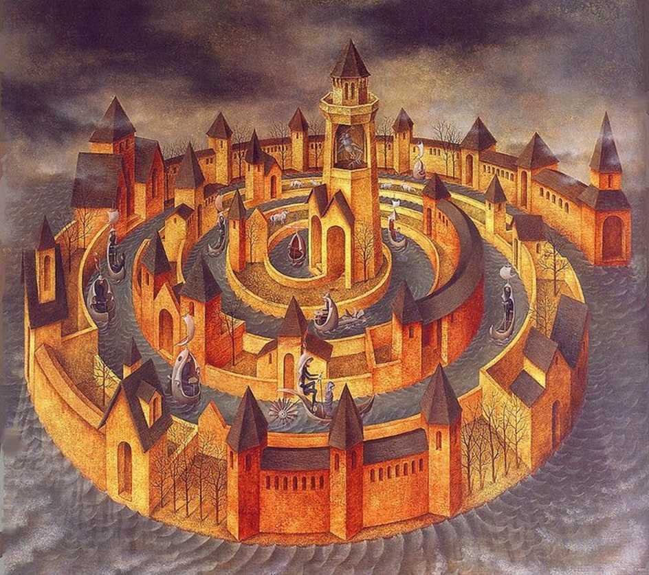 Этот прием объединяет в себе многие вышеперечисленные приемы. Здесь происходит не только сопоставление реальности и фантастики, но и создание временных сдвигов, запутанных повествований и сюжетов. Упоминаемые в книге предметы часто имеют воображаемый и нелепый характер, как будто человеку эти предметы снятся.
