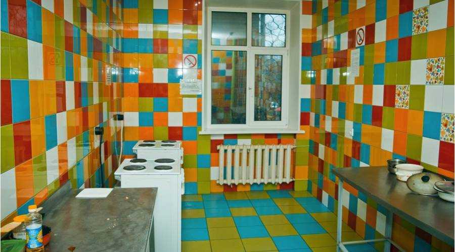 Пока ребят заселяют в старое 5-этажное здание, рассчитанное на проживание 350 человек. Оно относится к смешанному типу (большинство комнат – коридорного типа), отличаясь непередаваемой атмосферой – сразу видно, что в общежитии живут творческие люди. На первом этаже базируются аудитории, библиотека и комнаты для проведения репетиций. Кухня в здании одна на этаж, она оснащена двумя плитами и таким же количеством раковин, столов. Фонд развития подарил этому зданию 2 стиральные машины. Техника установлена в санузлах, базирующихся на 2 и 5 этажах.