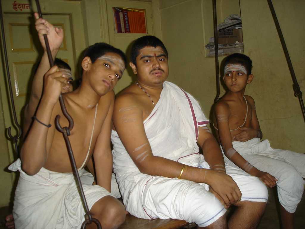 Учёного брахмана, как правило, окружали мальчики-ученики, проживающие до наступления юности в его доме, прислуживающие своему учителю-гуру и заучивающие с его слов «священные» тексты Вед, которые обладали гигантским объемом.