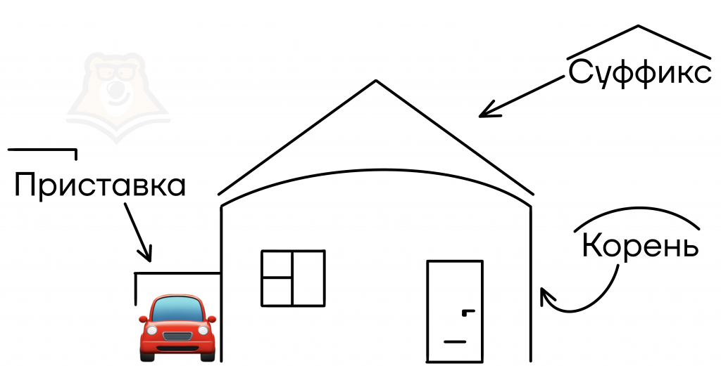 Давайте теперь представим слово в виде собранного дома и рассмотрим основные части: