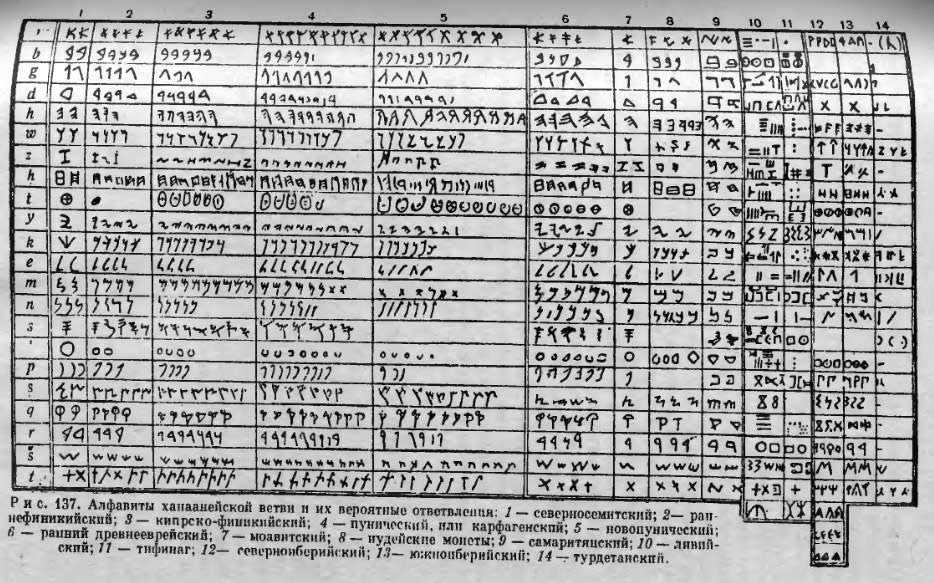 Алфавиты ханаанейской ветви и их вероятные ответвления.