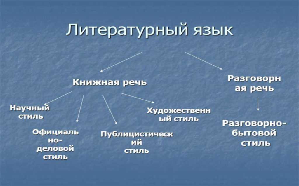 - стили книжной речи (научный, официально-деловой, публицистический, художественный);