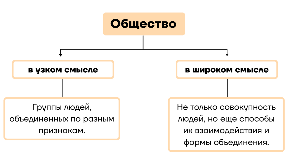 Общество (в широком смысле) — это обособившаяся от природы, но тесно связанная с ней часть материального мира, включающая в себя способы взаимодействия между людьми и формы объединения людей.