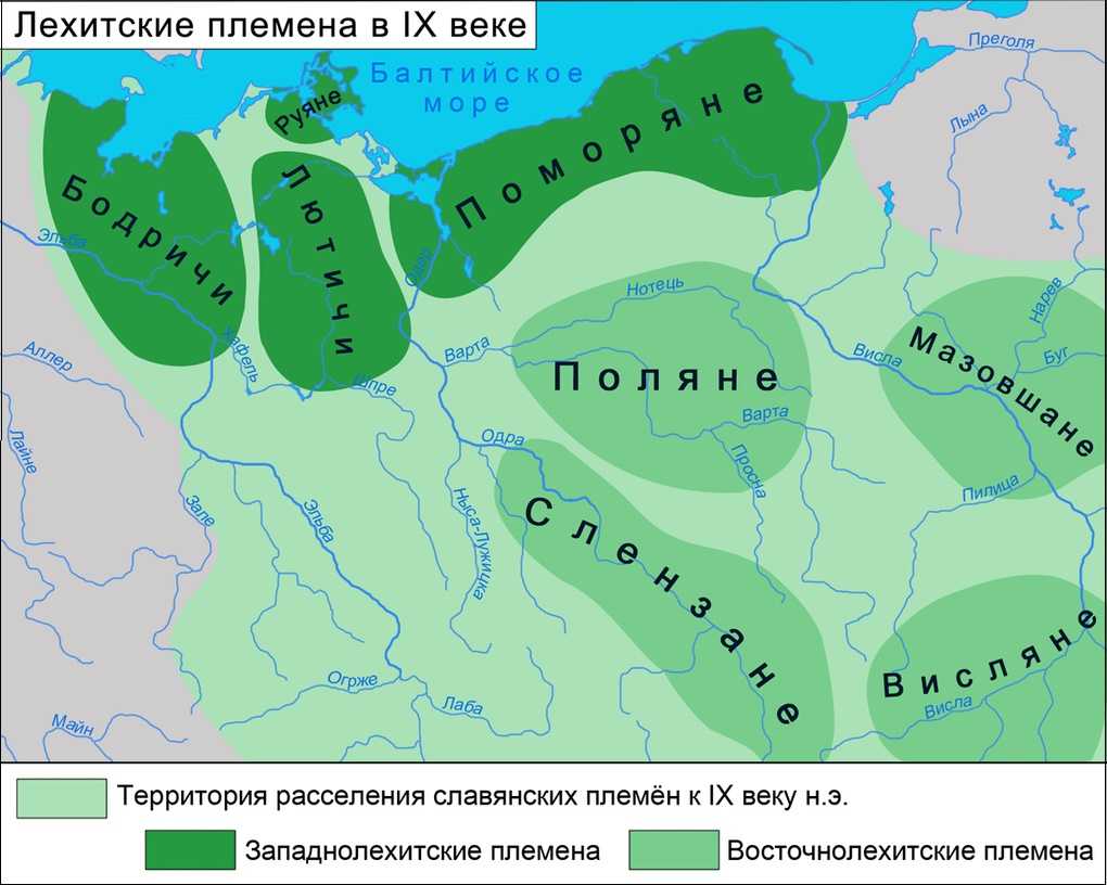 Известные племена были Obodrites в западной части Мекленбурга и Гольштейна, то Lutices (в) вокруг и к северу от Берлина, в том числе Hevelli в западном Бранденбурге, в Pomerans в восточной части Мекленбурга и Померании, а также в качестве Ranes (или Rujanes) на острове из Рюгена . В некоторых таблицах язык этих последних двух племен не считается полабским, а считается поморским, например словенским или кашубским.