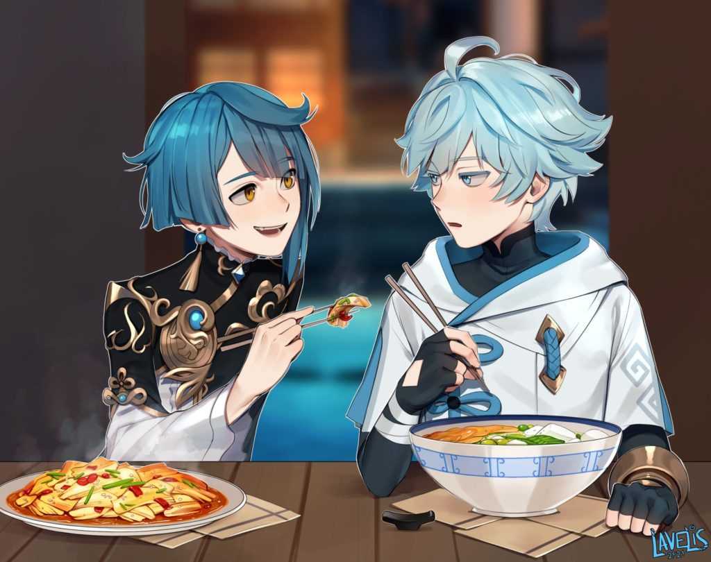 | ДПС | Прекрасно сочетается с Син Цю, так как его Крио способности смогут замораживать врагов, на которых есть эффект «Гидро» | |
