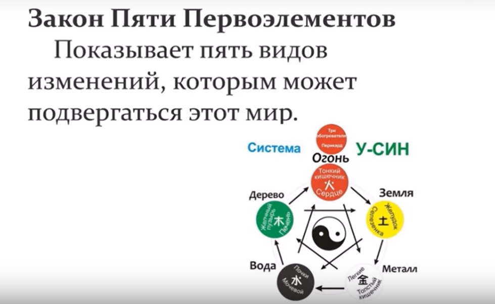 И третий тип взаимосвязей между стихиями и энергиями – это контроль. Огонь контролирует Металл, Земля — Воду, Металл — Дерево, Вода — Огонь, Дерево — Землю.