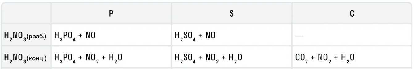 Также азотная кислота как сильный окислитель способна окислять некоторые неметаллы до их кислот. Давайте рассмотрим примеры: