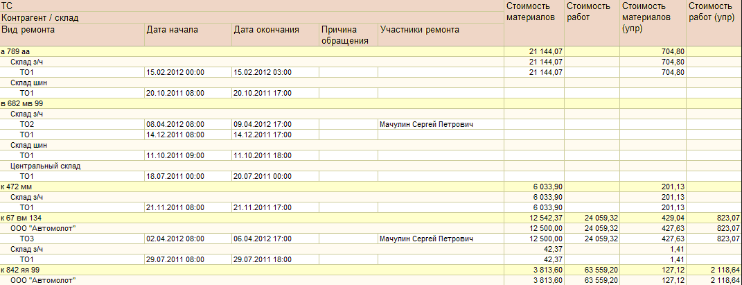 В отчетах прописывается статистика всех выполненных ремонтных работ.