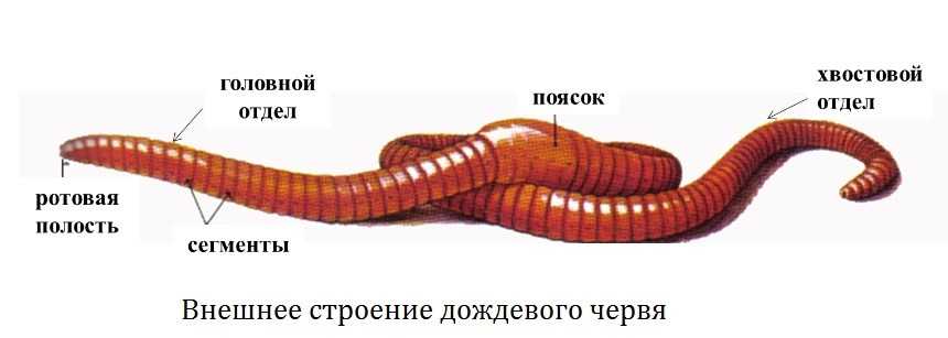 В передней части располагается ротовая полость и сгустки нейронов — головные ганглии. У дождевых червей есть поясок, через который происходит процесс разможения.