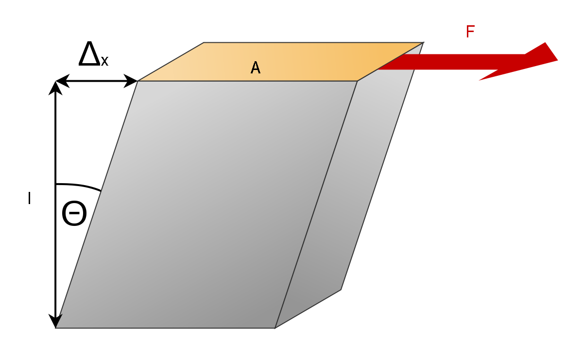 Если виды механических деформаций разделяли бы по сложности вычислений, то этот занял бы первое место. Такой вид изменения формы тела возникает при воздействии на него двух сил. При этом смещение любой точки тела происходит перпендикулярно к оси воздействующих сил. Говоря о таком типе деформации, следует упомянуть следующие величины, подлежащие вычислению: