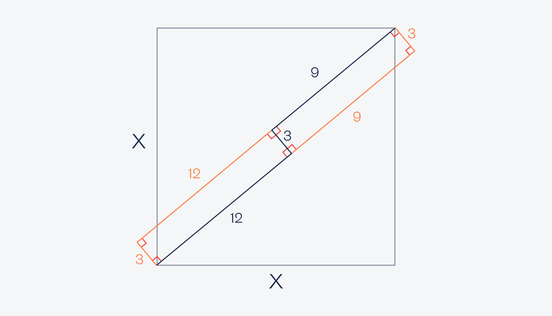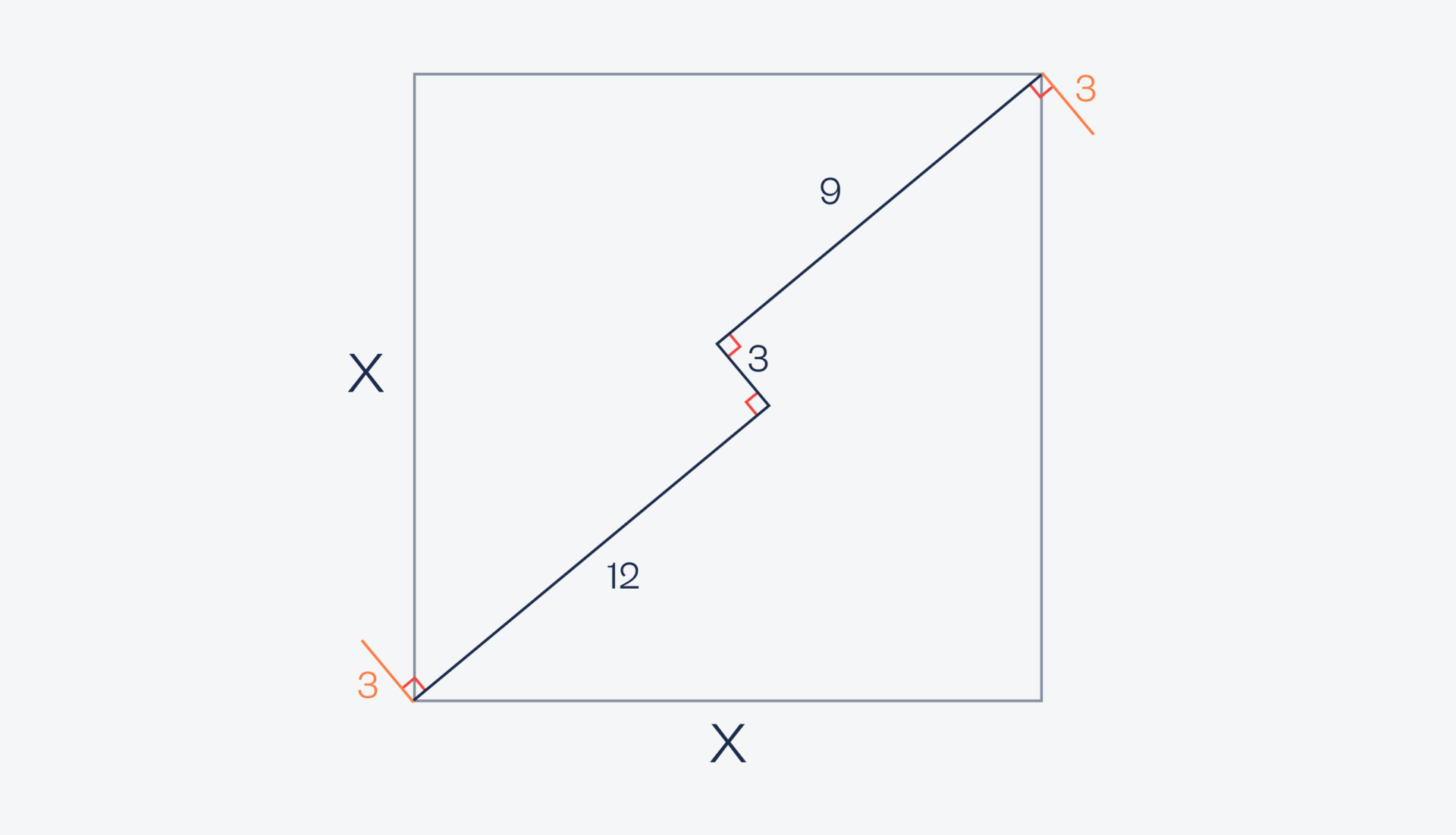 Нужно найти X, то есть длину стороны квадрата.