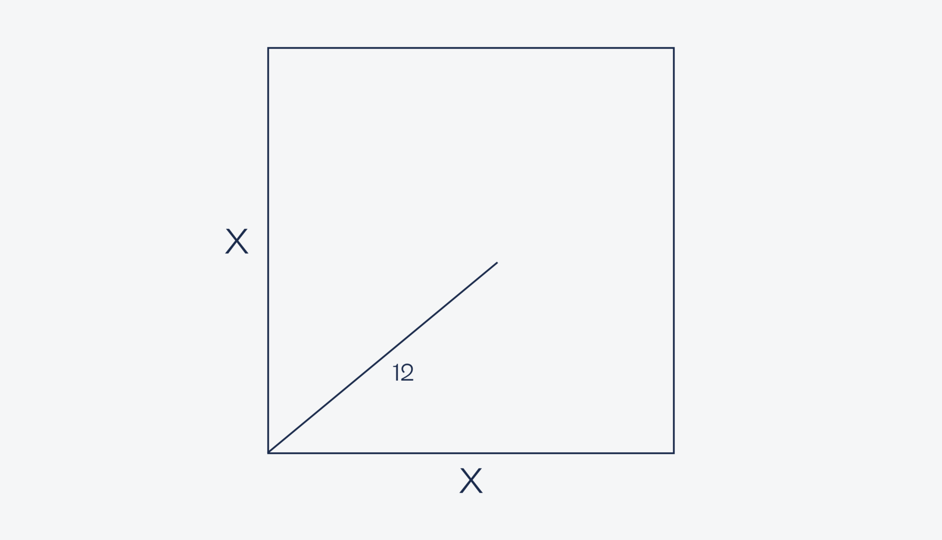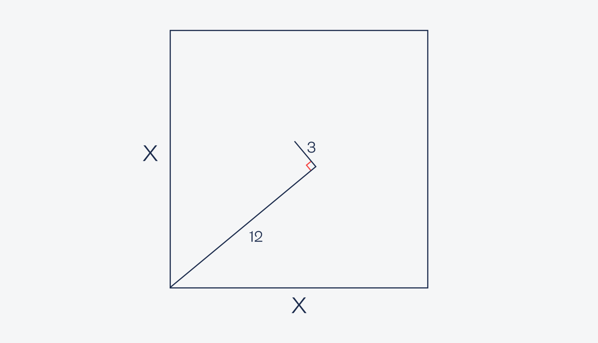 Теперь условия: есть квадрат с длиной стороны x. Из нижнего левого угла провели под каким-то углом линию длиной 12 сантиметров: