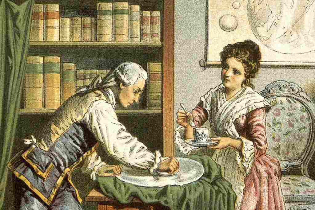 Гершель полирует зеркало, а его сестра Каролина кормит его с ложечки, чтобы будущий великий астроном не отвлекался от длительного процесса полировки