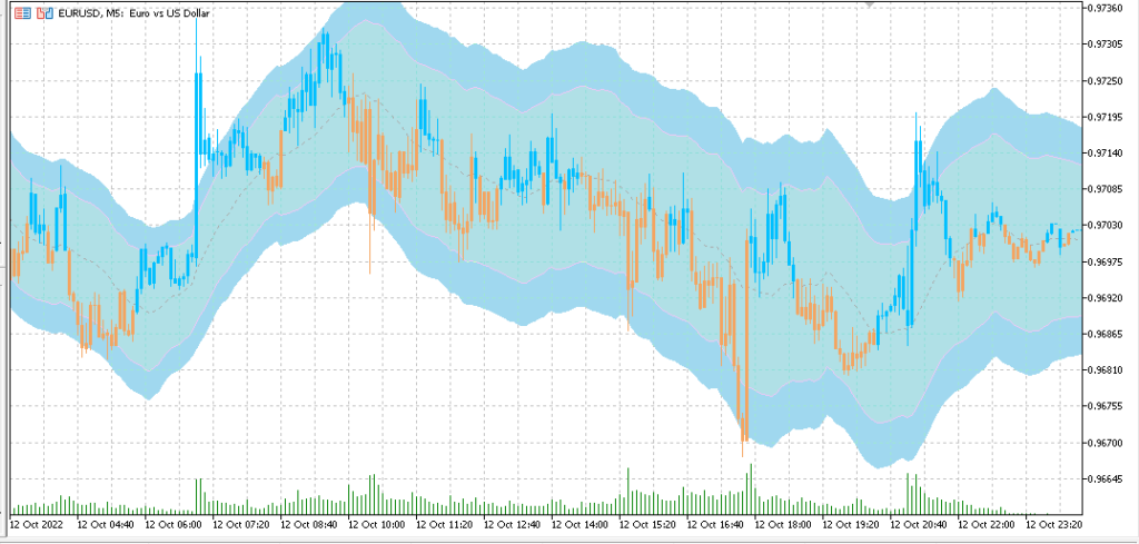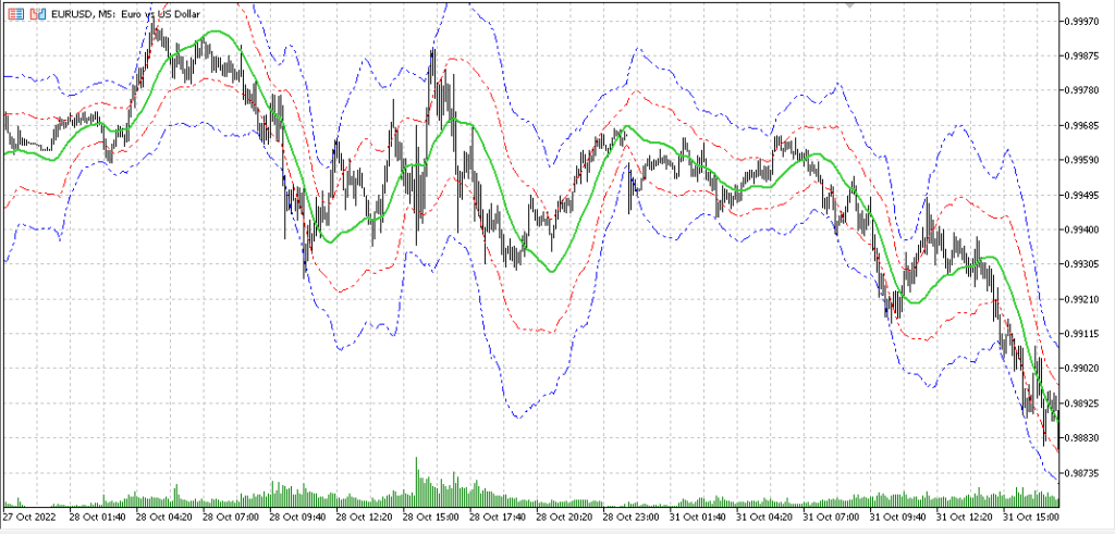 Чем-то похож на предыдущий индикатор. Индикатор строит коридор,
