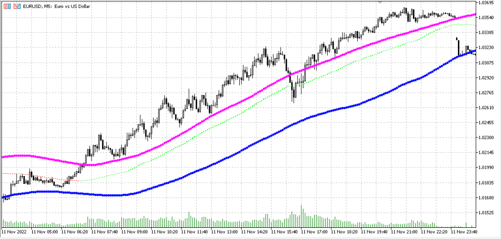 Это индикатор отслеживания тренда, который используется для сглаживания шума на ценовом графике и определения потенциальных восходящих или нисходящих тенденций.
