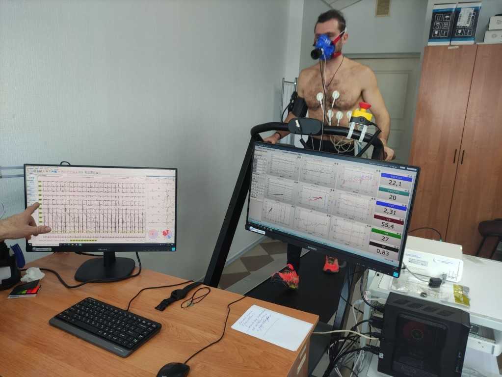Исследование проводится с помощью системы кардио- респираторной диагностики MetaLyzer 3B-R3, Германия для спироэргометрии, беговой дорожки или велоэргометре .