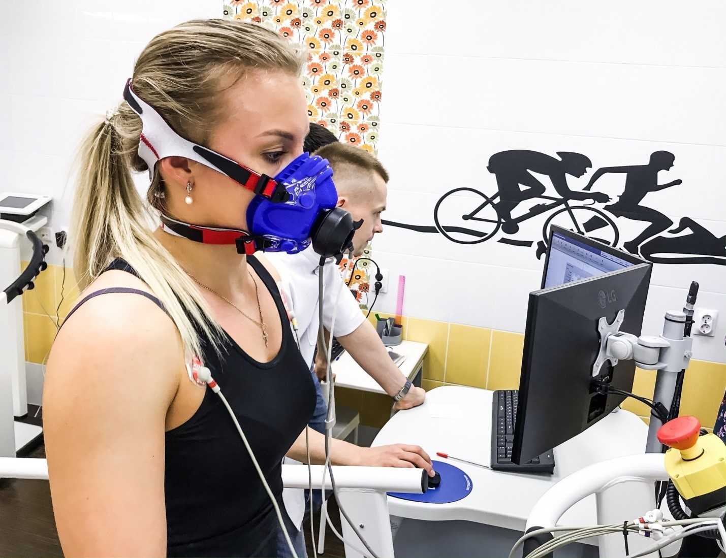 Пациенту, одетому в удобную одежду и обувь, накладываются электроды для ЭКГ в 12 отведениях или пояс POLAR HR, манжета для измерения АД, надевается маска, которая с помощью флоу-сенсора присоединяется к датчику потока и газоанализатору.