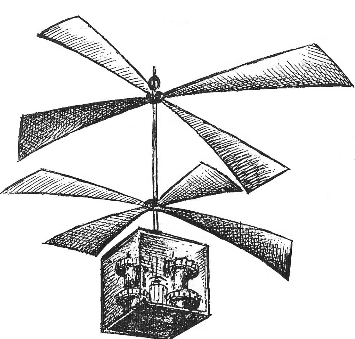 Независимо от Леонардо да Винчи (чьи работы были найдены гораздо позже), Михаил Ломоносов изобрел первый прототип вертолёта.