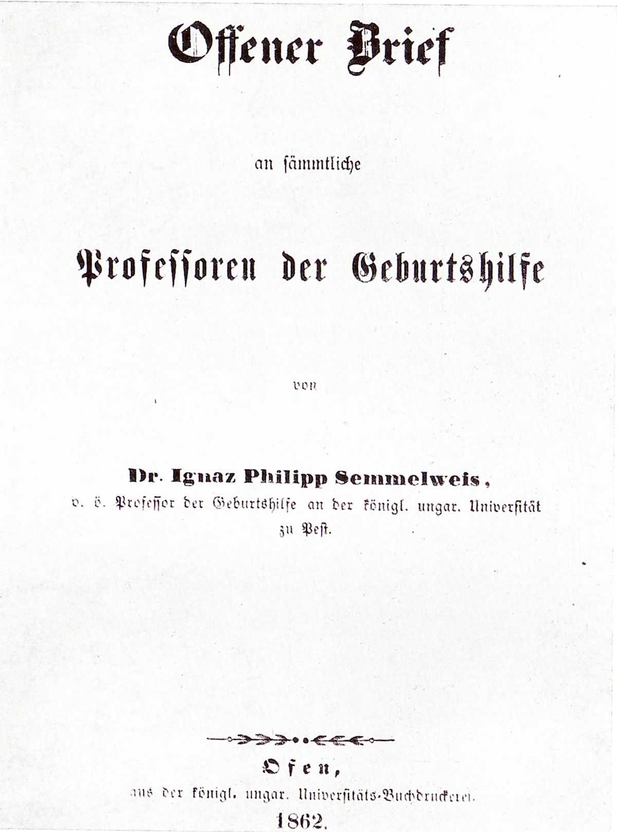 Открытое письмо И. Ф. Земмельвейса профессорам-педиатрам, 1862. (Wikimedia Commons)
