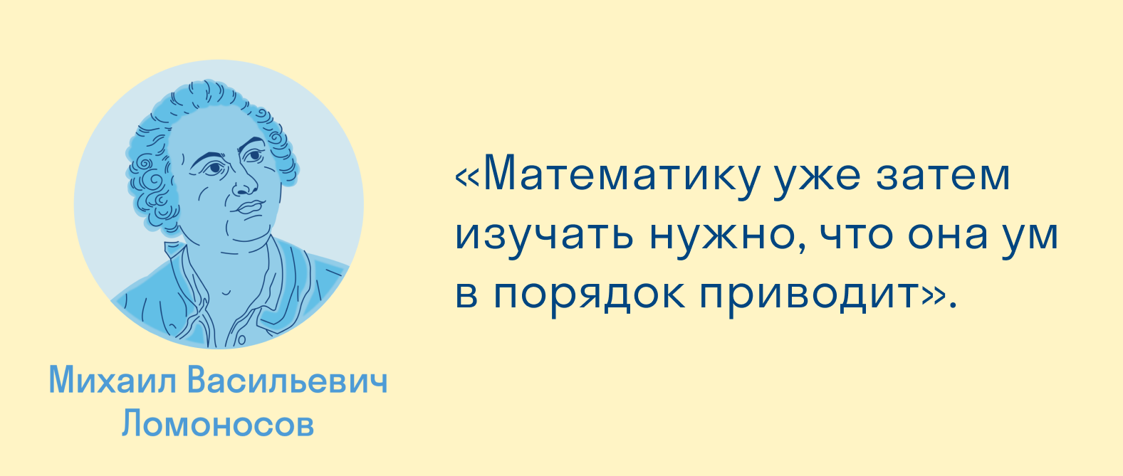 Что понять, зачем учить математику в школе, только представьте, как приятно, когда в голове нет «каши» и путаницы в рассуждениях. На этот счет еще в прошлом веке великий учёный Ломоносов сказал: «Математику только затем учить надо, что она ум в порядок приводит». Как тут можно спорить?