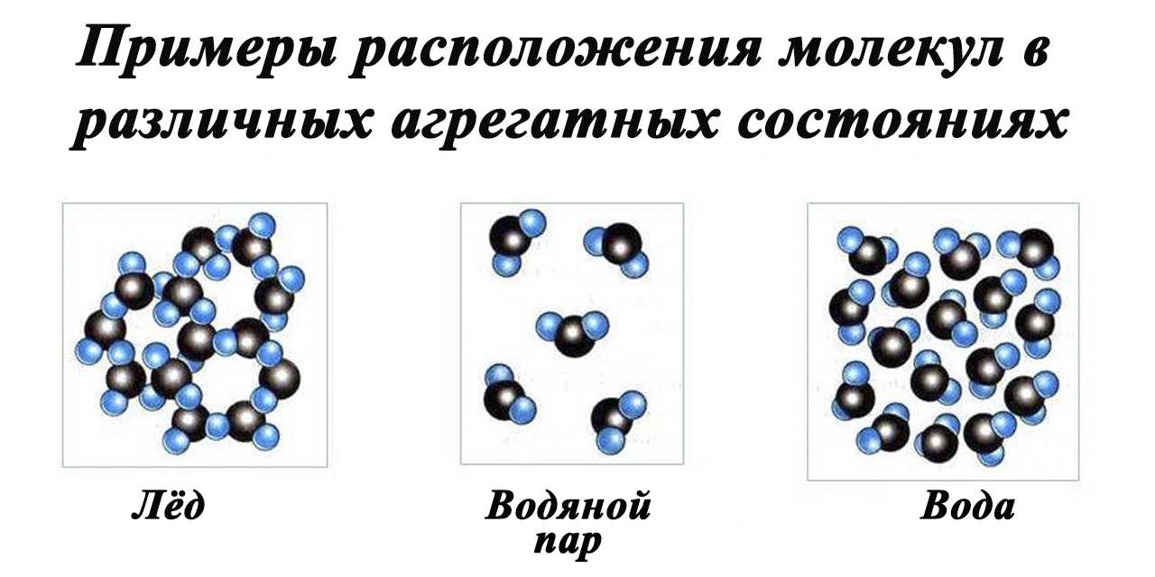 Строение молекулы воды, водородная связь способствует расположению молекул воды. Рассмотрим особенности каждого агрегатного состояния по отдельности.