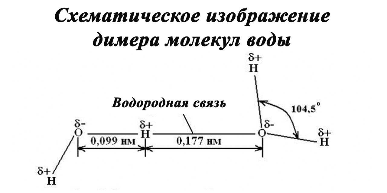 Димер — это две молекулы Н2О, соединенные водородной связью. Связь между молекулами воды водородная.