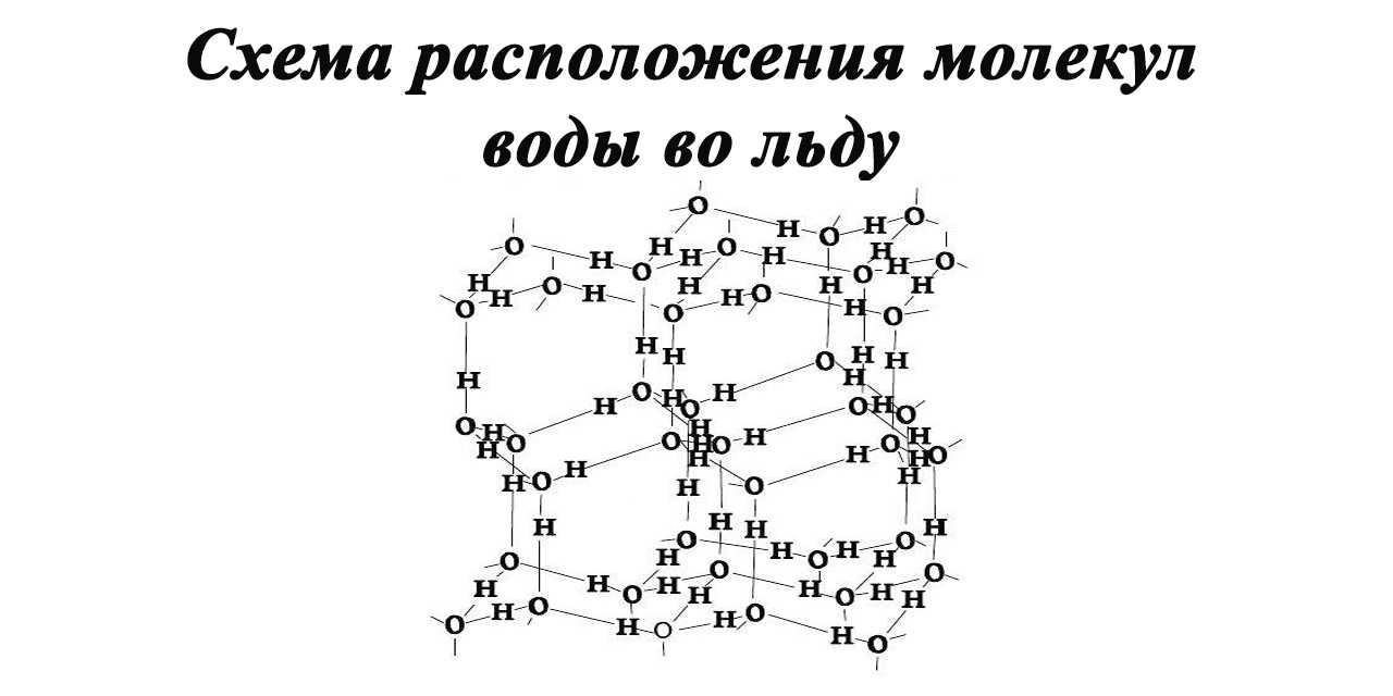 Каждая молекула способна образовать четыре водородные связи: две между неподеленными электронными парами её атома кислорода и атомами водорода соседних молекул и ещё две – между атомами водорода и атомами кислорода двух других молекул.
