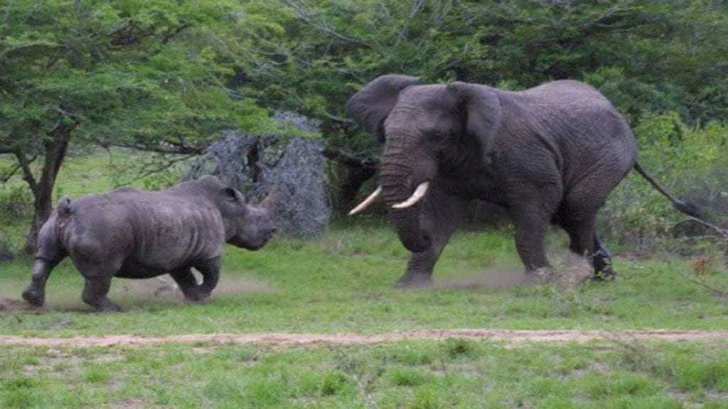 В большинстве случаев, повстречавшись на одной тропе, эти толстокожие гиганты мирно расходятся по своим делам. Но иногда носорог по непонятным причинам атакует слона, и тому приходится «вразумлять» разбушевавшегося соседа. Правда, битва между этими животными носит скорее символический характер. Ведь носорог не может причинить противнику особого вреда. А слон в свою очередь не стремится убить носорога, а просто отталкивает задиристого дуэлянта хоботом, и тот, понимая, что перевес сил на стороне противника, быстро успокаивается и уступает ему дорогу.